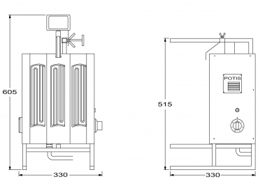 Der elektrisch betriebene POTIS EH Dönergrill ist die ideale Lösung für kleine Gastronomiebetriebe und Foodtrucks, die auf engem Raum authentischen Döner- oder Gyrosgenuss bieten möchten. Mit einer kompakten Stellfläche von 330 x 330 mm (bzw. 330 x 420 mm mit Fettwanne) und 605 mm Gerätehöhe nutzt er den Platz besonders effizient.
