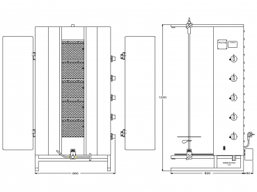 Der Potis MU GD5 ist ein Gas-Dönergrill, der für den professionellen Dauerbetrieb in Imbissen, Restaurants und Großküchen konzipiert wurde. Die robuste Edelstahlkonstruktion sorgt für Langlebigkeit und einfache Reinigung, während der hintenliegende Motor eine gleichmäßige Rotation des Spießes gewährleistet – auch bei großen Fleischmengen und intensivem Betrieb.